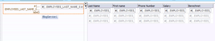 Dann wird in ADF nur eine “Page” gebaut. Auf der linken Seite ziehe ich meine Parameter für den Web-Service auf der rechten Seite werden die Ergebnisse angezeigt.