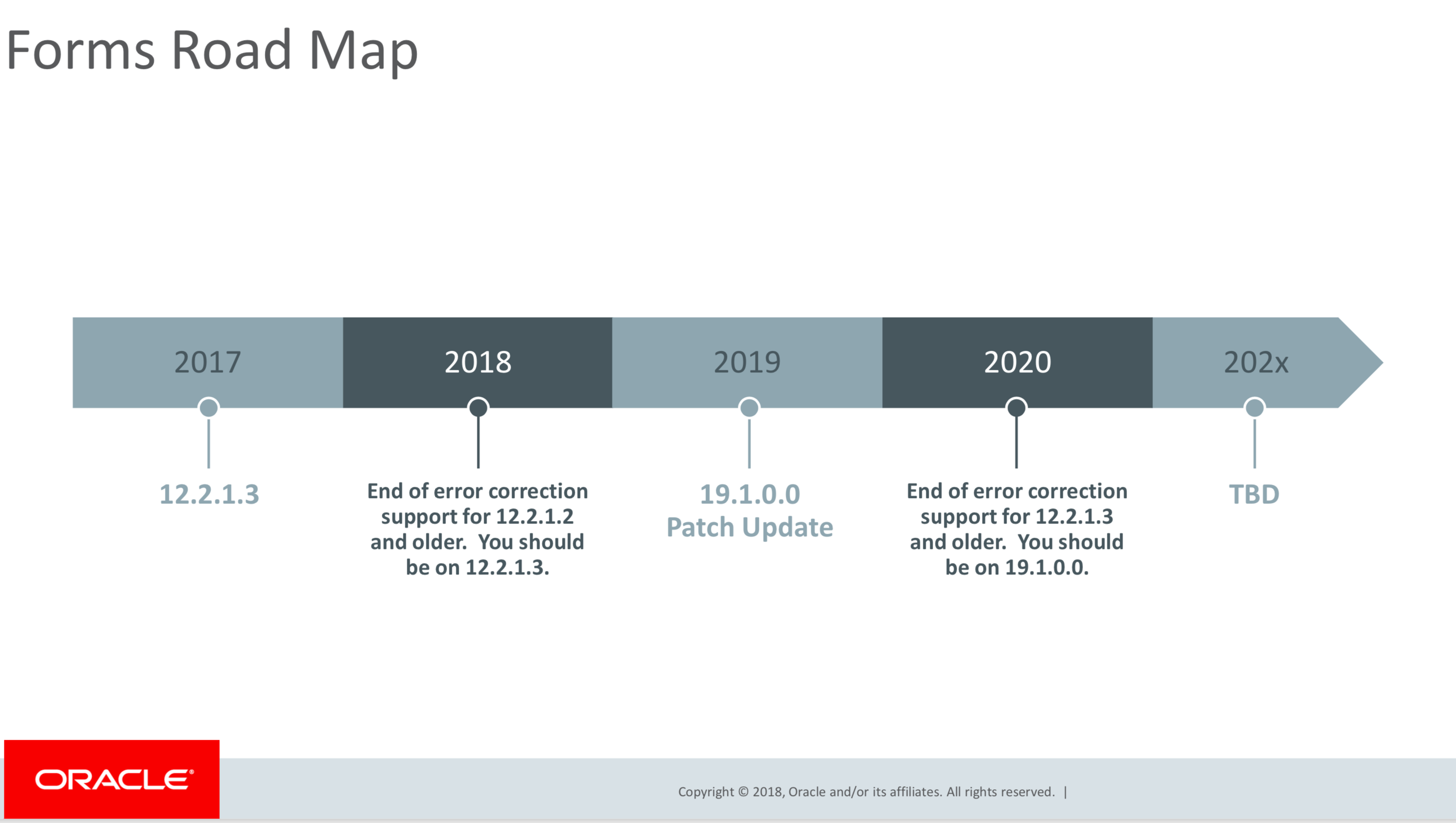 Ja Oracle Forms 12c (12.2.1.4) oder evtl. 19c (laut Michael 19.1.0.0) ist auf dem Weg und wird dieses Jahr noch auf dem Markt erscheinen. Es wird sicherlich einige Neuerungen geben, leider kommt es nicht wie einige Unternehmen in einem Webinar ankündigen jetzt schon im Juni. Es wird der Eindruck durch den Titel vermittelt, das Forms 19 kurz vor dem Rollout steht. FACKE NEWS !
